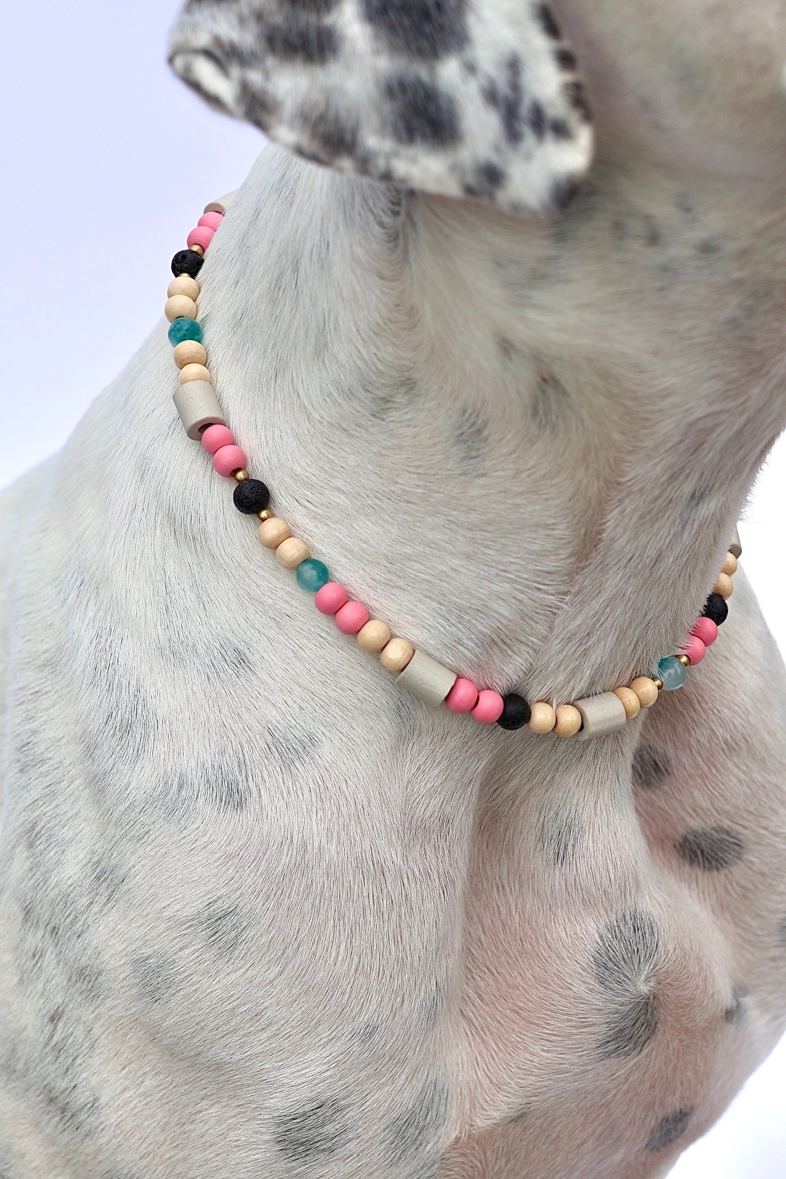 Hundekette mit Holzperlen, Lava- & Edelstein