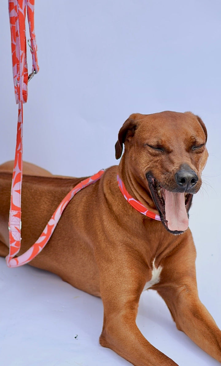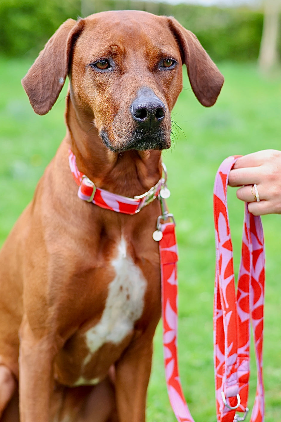 Unsere Leinen, Halsbänder und Geschirre verbinden Funktion mit Stil – liebevoll von Hand gefertigt, mit besonderen Stoffen, Farben und Details.